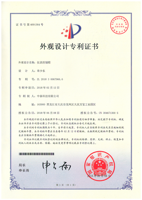 外觀設(shè)計專利證書